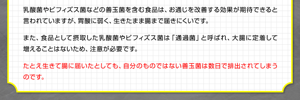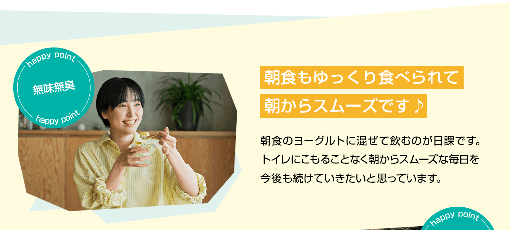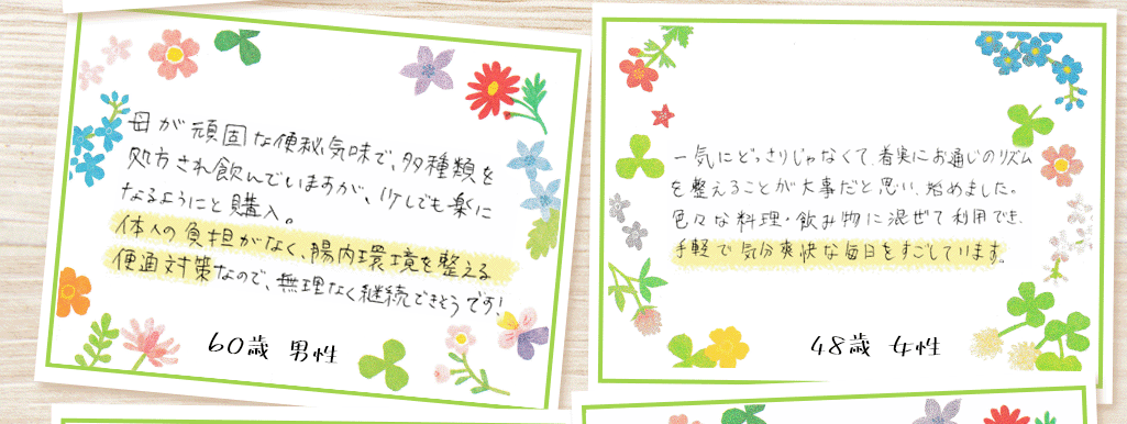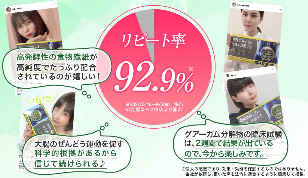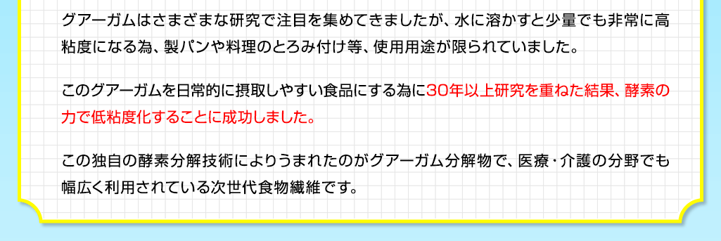 あなたも、今まで色々な製品を「約半年間試しては諦め」を繰り返してきたのではないでしょうか。もし、続けられる製品に出会っていたら、今回こうして「飲むグアーガム」には辿り着いてなかったと思います。