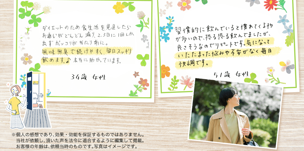 現在、健康食品は「理論上効果がある」という成分であふれています。しかし、私たちは成分の理論データはあくまで参考程度として「実際に体感できるかどうか」の体験モニターに多くの月日とお金をかけています。
